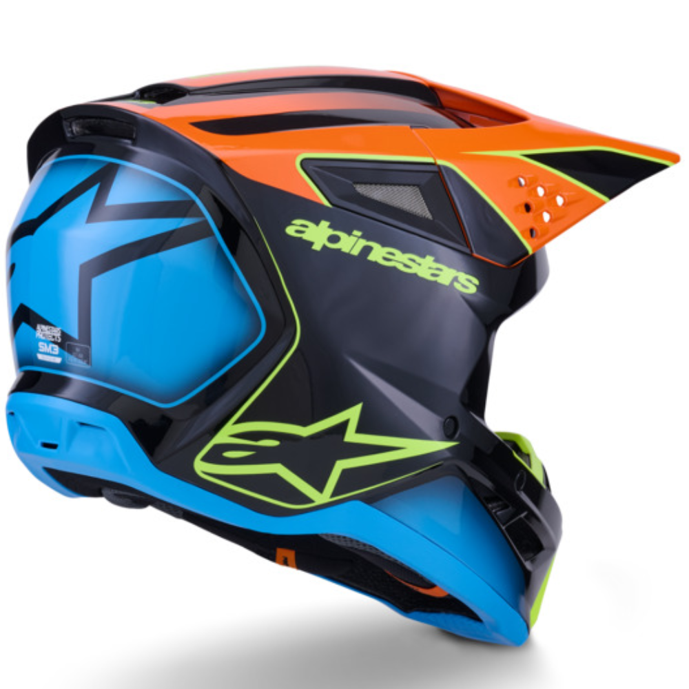 Helmet: ALPINESTARS 2026 SM3 FRAY ECE06 Black/Orange/Yellow Fluo Glossy